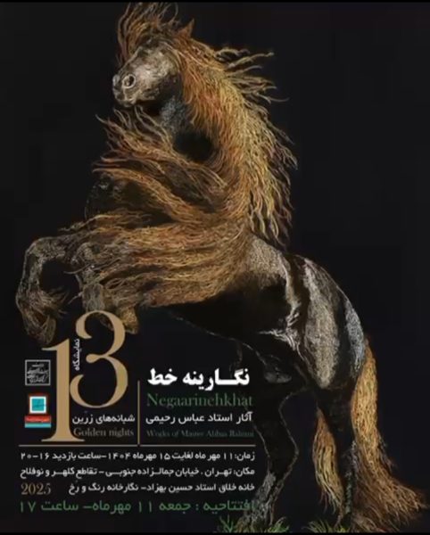 ریال نیوز : آئین بازگشایی نمایشگاهِ نگارینه خط با عنوان شبانه های زرین ۱۳ اثر استاد عباس رحیمی در نگارخانه رنگ و رخ برگزار میشود.
