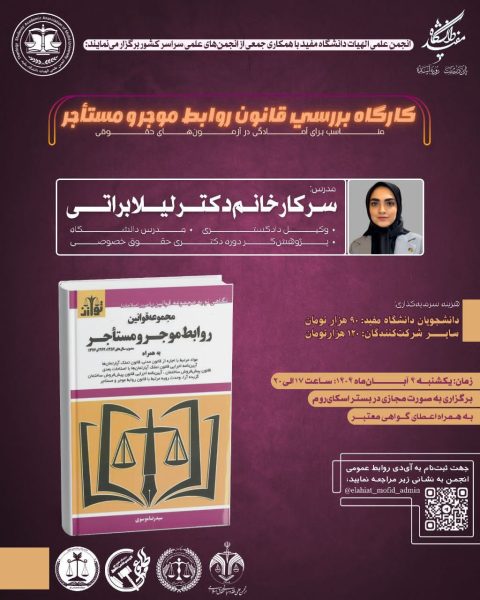 ریال نیوز : کارگاه بررسی قانون روابط موجر و مستاجر به همت انجمن علمی الهیات دانشگاه مفید با همکاری جمعی از انجمن‌های علمی سراسر کشور برگزار می‌ شود.