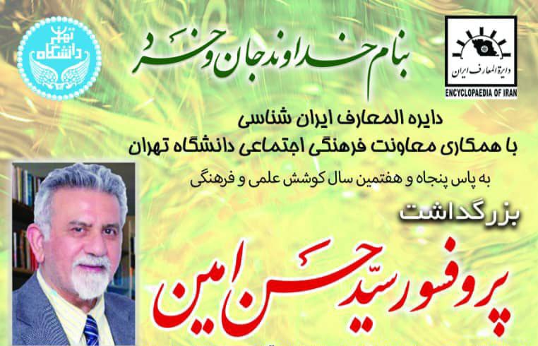 ریال نیوز : مراسم تقدیر از ۵۷ سال کوشش های علمی ، فرهنگی و ادبی پروفسور سیدحسن امین ، در بعداز ظهر یکشنبه ۳۰ آذر همزمان با جشن یلدا و افتتاح گالری آثار استاد کامل قلیپور با مدیریت اجرایی مهندس محمود رفیعی در دانشگاه تهران برگزار می شود .